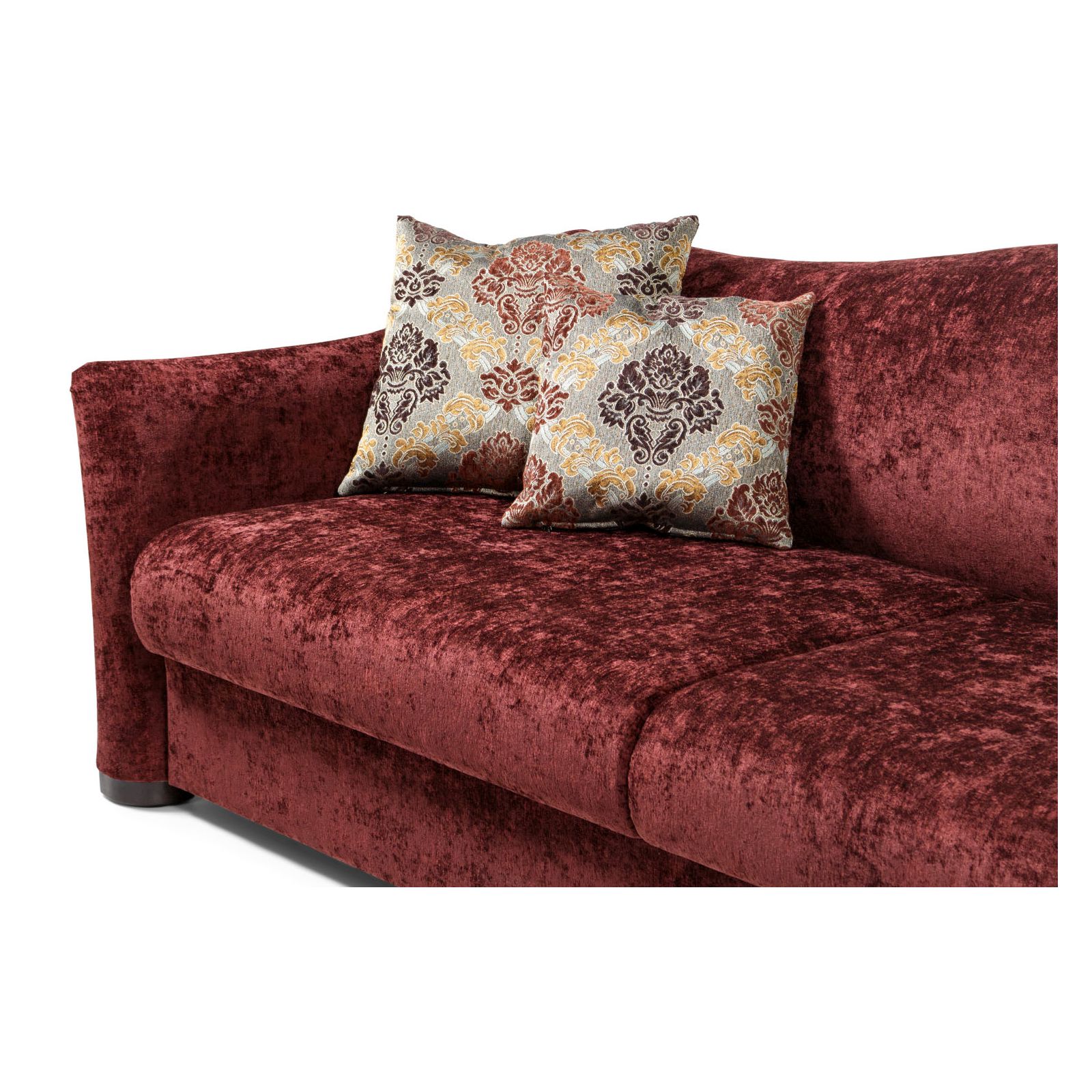 В базовых комплектах «Бергамо» к дивану идут четыре подушки, используются механизмы трансформации Пума (для постоянного использования) или Сюзи (гостевой вариант), в качестве наполнителя выступает пенополиуретан. Коллекция представлена в пяти основных цветовых решениях, но вы можете подобрать индивидуальную обивку.