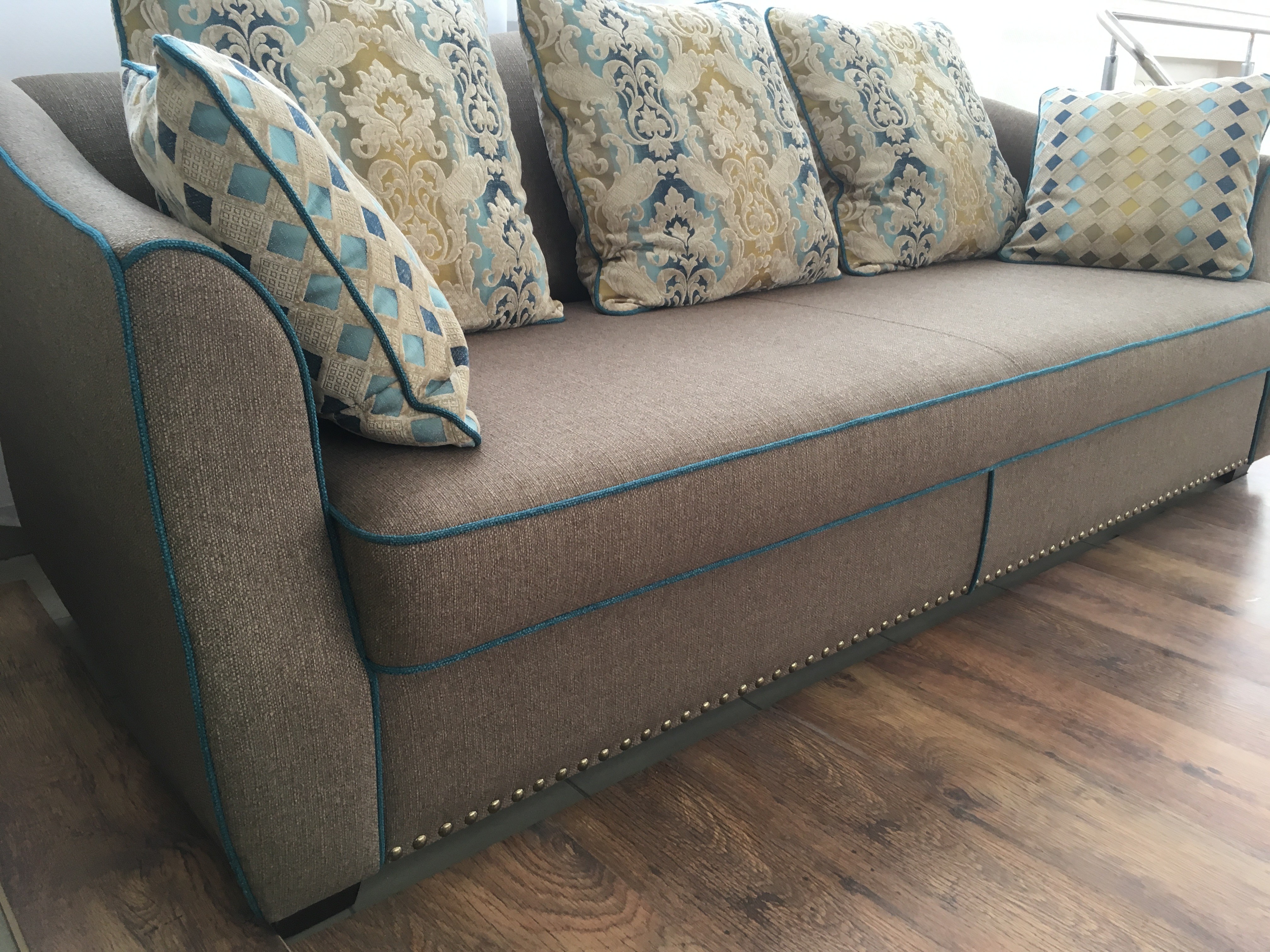 В базовых комплектах «Довилль» к дивану идут четыре подушки, используются механизмы трансформации Пума (для постоянного использования) или Сюзи (гостевой вариант), в качестве наполнителя выступает пенополиуретан. Коллекция представлена в пяти основных цветовых решениях, но вы можете подобрать индивидуальную обивку.