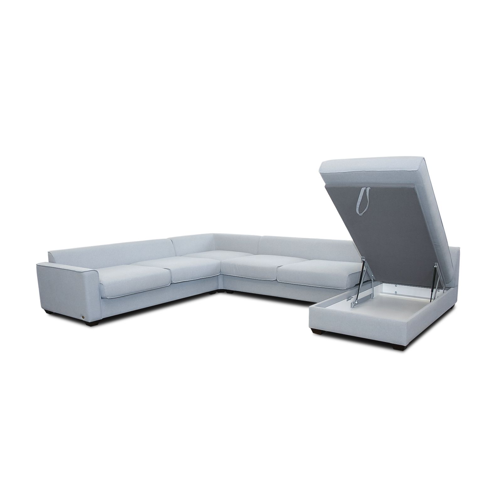 В случае дивана «Мичиган-2» угловой она состоит из одного локтя, диванной секции без механизма, угловой секции, диванной секции с механизмом и оттоманки.