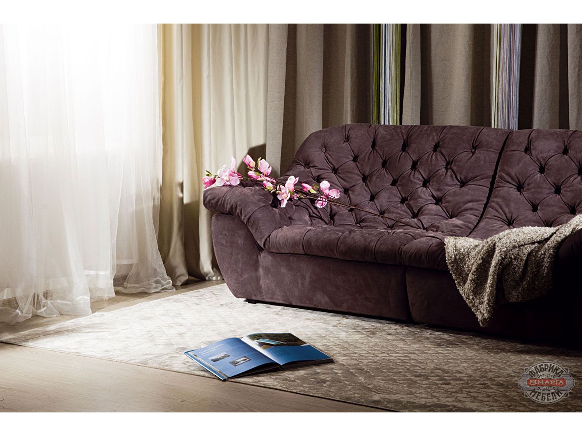 Форма дивана не только эстетична, но и очень удобна, расслабляет и дает отдых спине и шее. Невысокий и мягкий локотник с успехом заменяет подушку и, хотя данная модель не предполагает раскладного спального места, комплект из трех-четырех модулей c легкостью послужит односпальной кроватью.