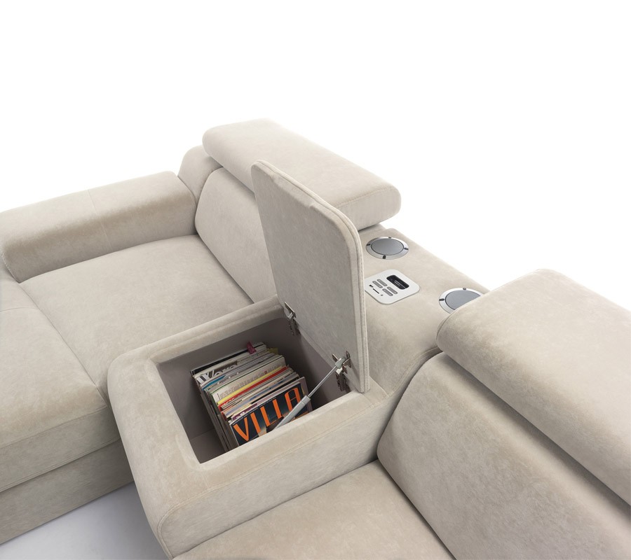 Диван Gala Collezione Luciano угловой, с баром и аудиосистемой, в ткани