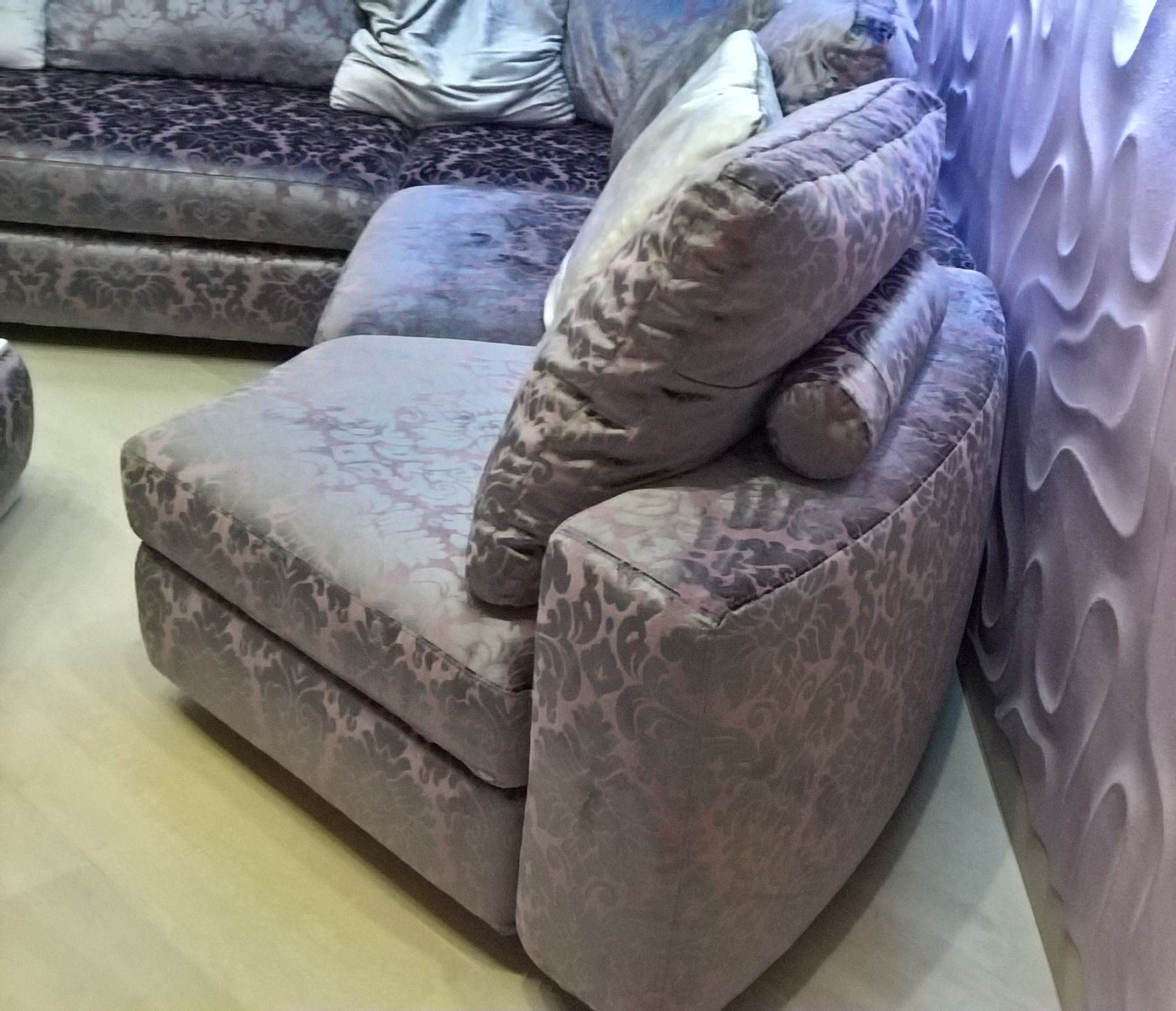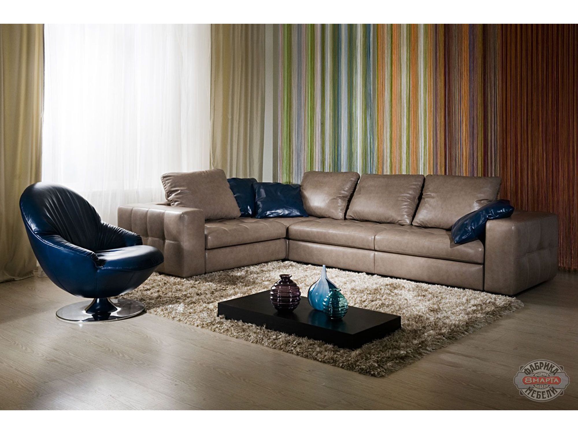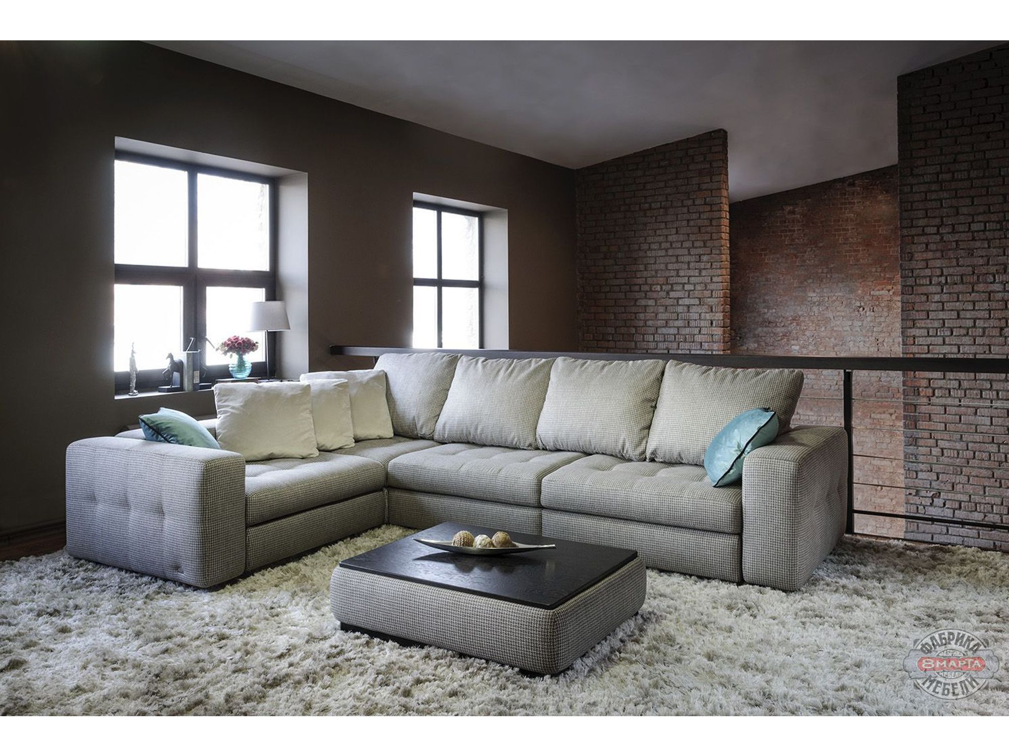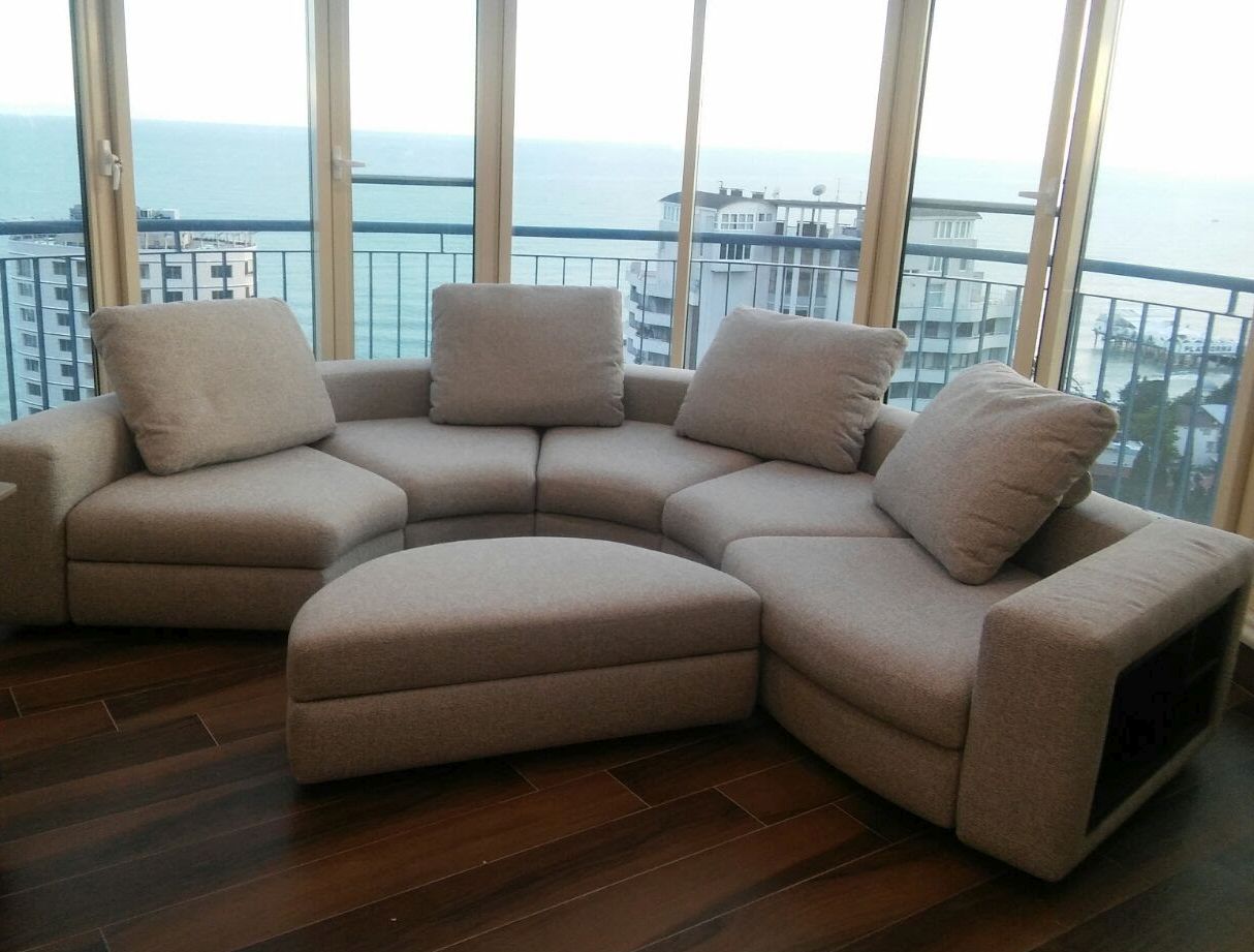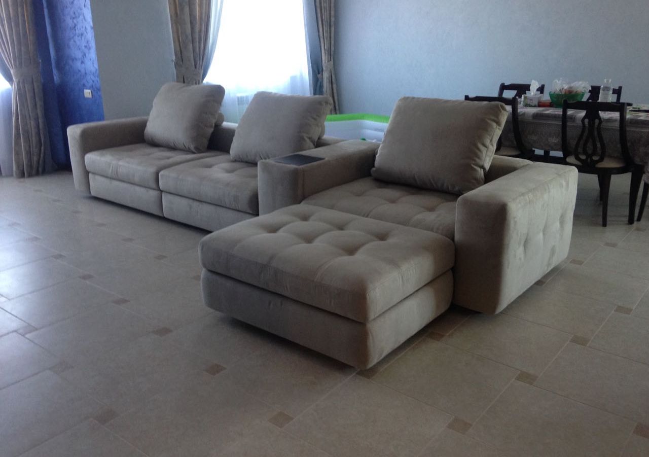 Модульная взаимозаменяемая передвижная система. Диван-трансформер может быть эркерным. Есть бар и вариант как узких, так и широких, а также деревянных спинок-локотников. Бельевые ящики присутствуют в каждом пуфе. Спальное место независимое, отсоединяется и может использоваться отдельно. |