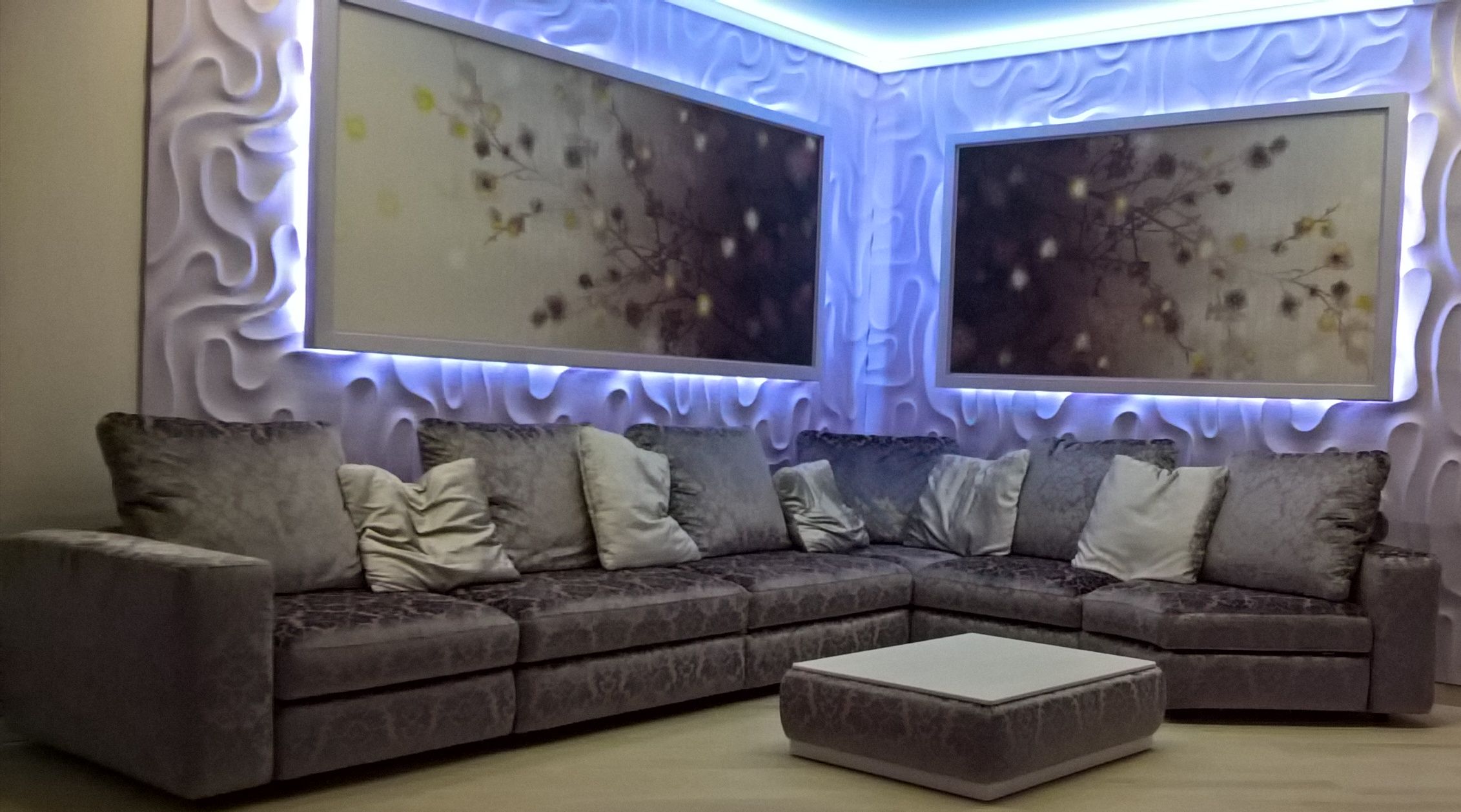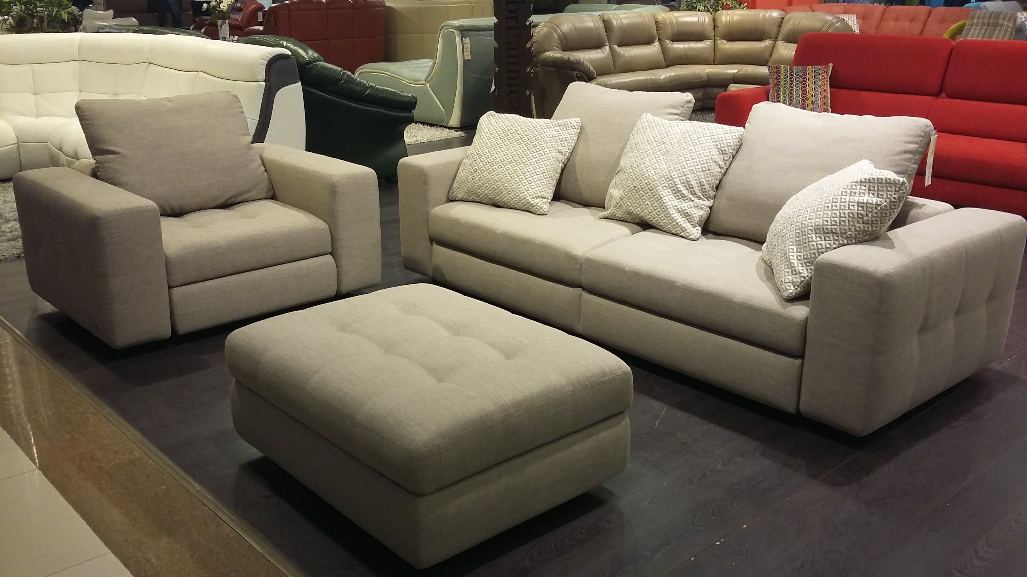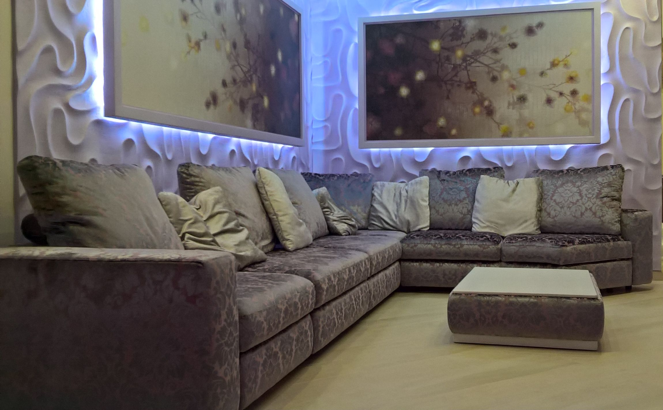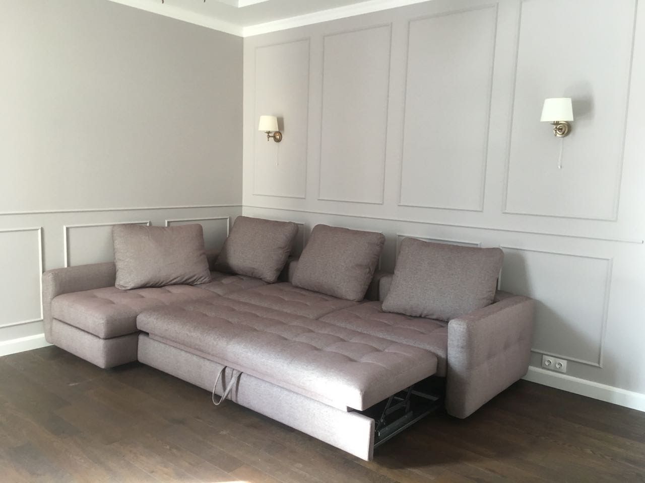 Модульная взаимозаменяемая передвижная система. Диван-трансформер может быть эркерным. Есть бар и вариант как узких, так и широких, а также деревянных спинок-локотников. Бельевые ящики присутствуют в каждом пуфе. Спальное место независимое, отсоединяется и может использоваться отдельно. |