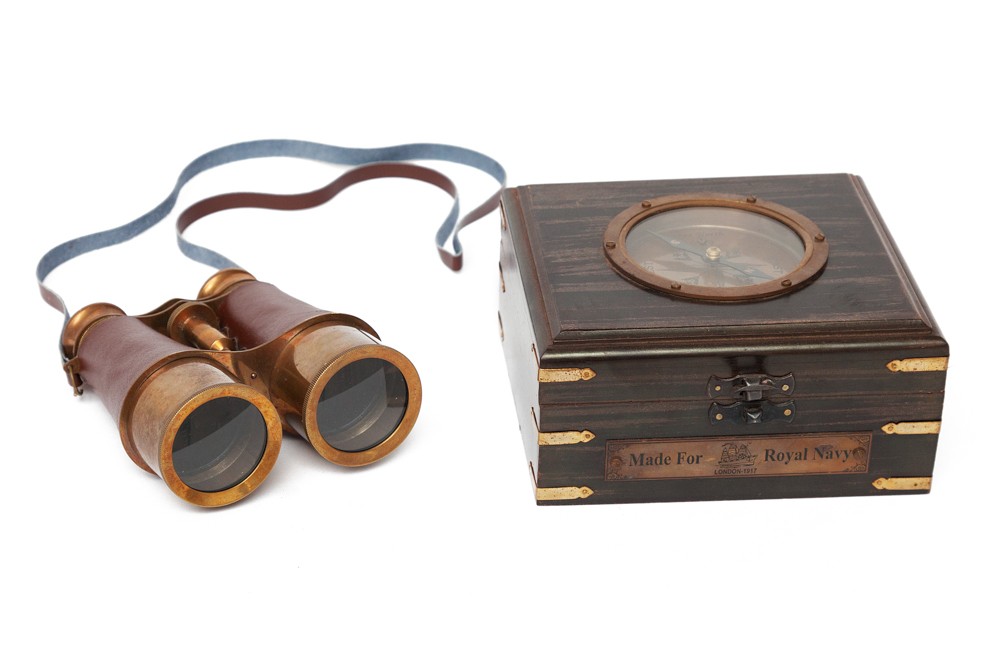 Бинокль Secret De Maison в деревянной подарочной коробке с компасом и латунным декором на VALLES.TOP