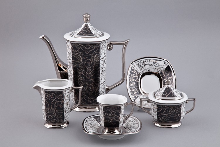 Сервиз Rudolf Kämpf Empire мокко кофейный, черный, с платиной, на 6 персон