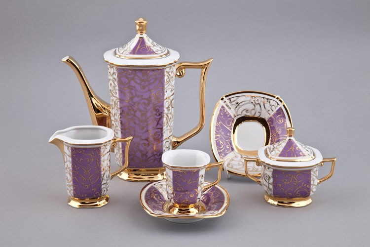 Сервиз Rudolf Kämpf Empire мокко кофейный, фиолетовый, с платиной, на 6 персон на VALLES.TOP
