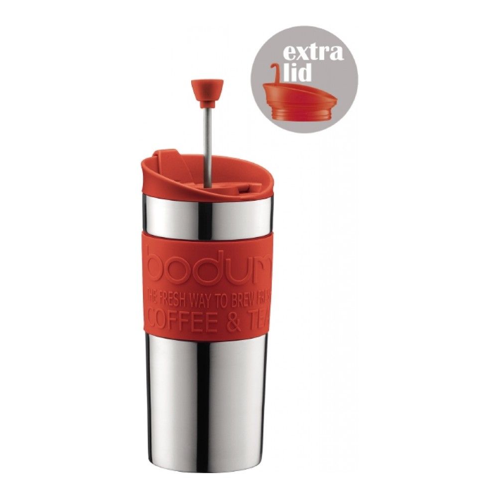 Дорожная кружка для кофе (френч-пресс) Bodum Travel с дополнительной крышкой (clip), 0.35л, цвет красный на VALLES.TOP