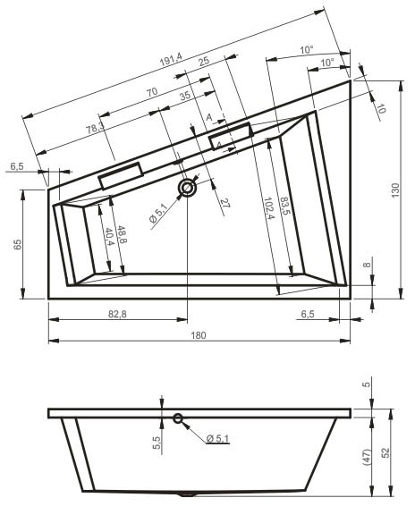 Ванна Riho Doppio акриловая, ассиметричная, правая, белая, 180х130 см